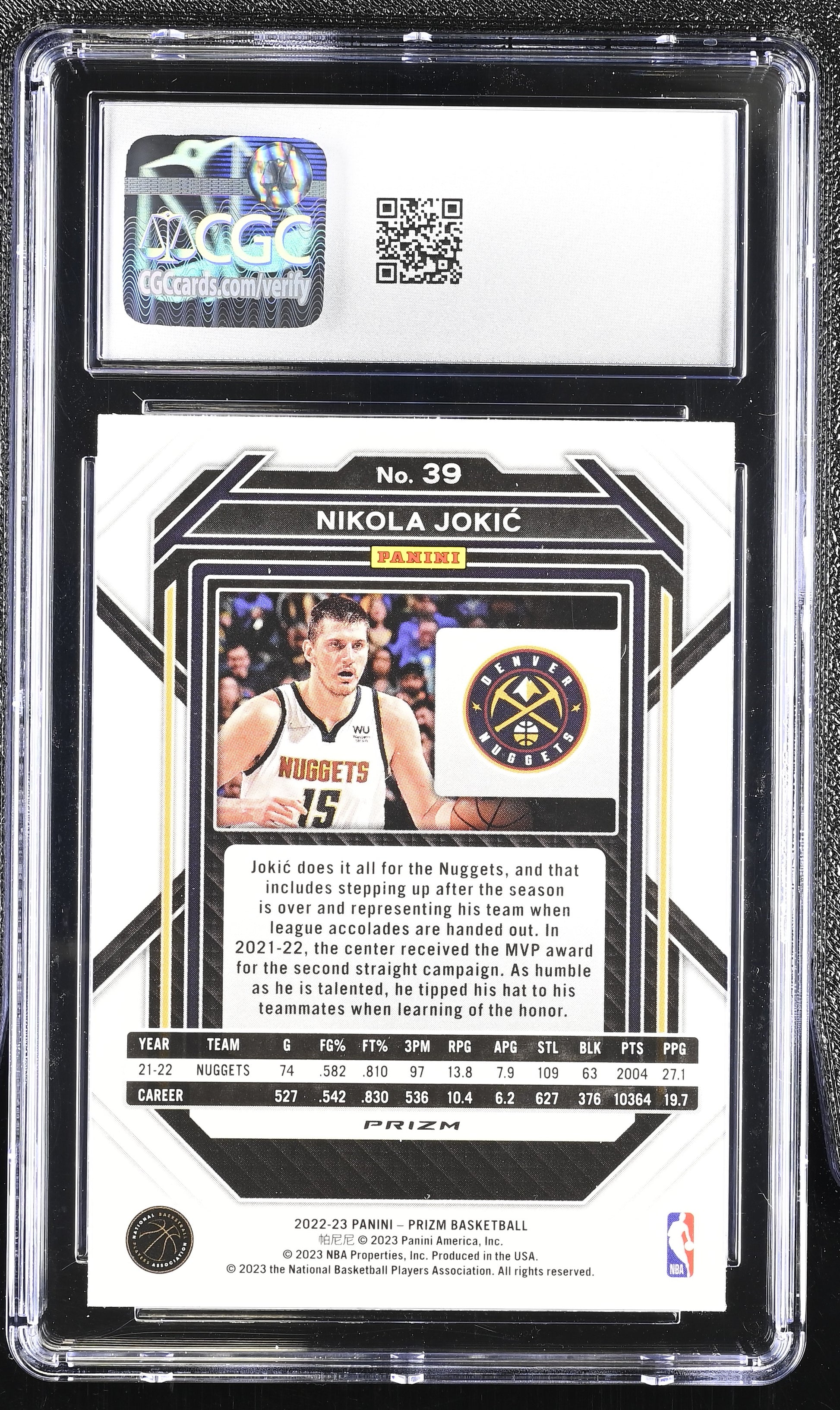 You are purchasing a 2022-23 Panini Prizm Nikola Jokic #39 Red Ice CGC 10. You will receive the exact item in the photographs. Thank you for looking. Listed With Mascot.