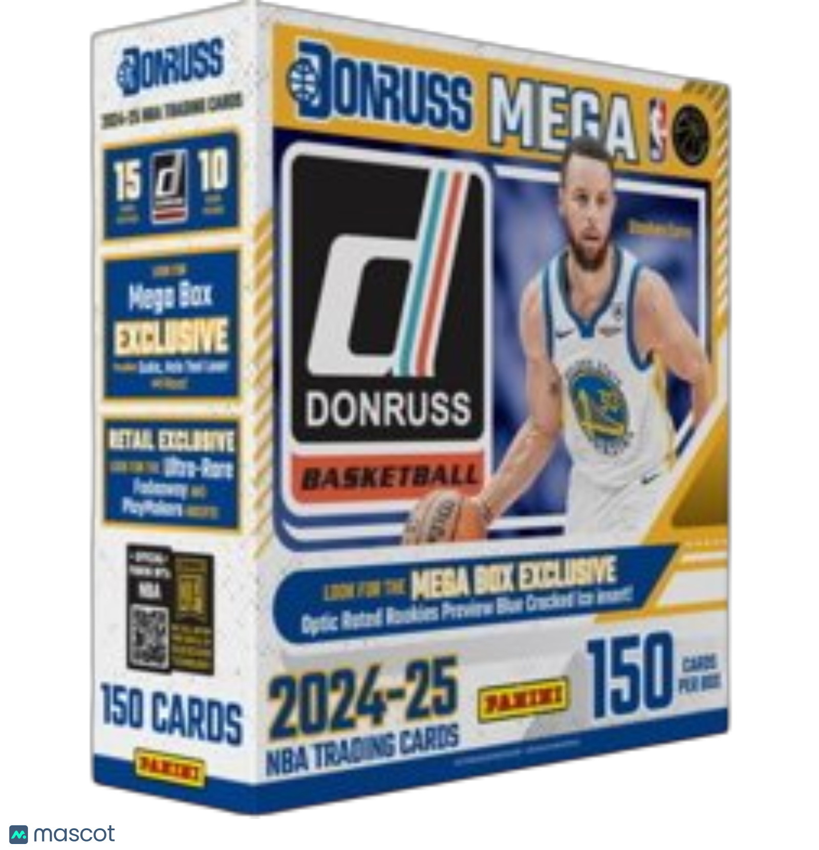 2024 Panini NBA Donruss Mega Experience the excitement of the 2024-25 NBA season with the 2024 Panini NBA Donruss Mega box. Each box contains 10 packs with 15 cards per pack, featuring a diverse checklist of 200 veterans and 50 Rated Rookies! This set boasts a robust array of inserts, guarantees two FOTL exclusive red autograph parallels #’d/11, and offers opportunities to find autographs from top rookies as well as various insert sets. Don’t miss your chance to collect the iconic Rated Rookies alongside stunning memorabilia and autograph cards! Box Configuration: 10 packs per box, 15 cards per pack (150 total) Highlights – 2024 Panini NBA Donruss Mega Base set includes 200 veterans and 50 Rated Rookies Look for 20 inserts/parallels per box, on average Chase after autographs from the Rated Rookie Signatures and Next Day Autographs Discover new insert sets such as Dominators Autographs and Net Marvels Signatures Listed With Mascot.
