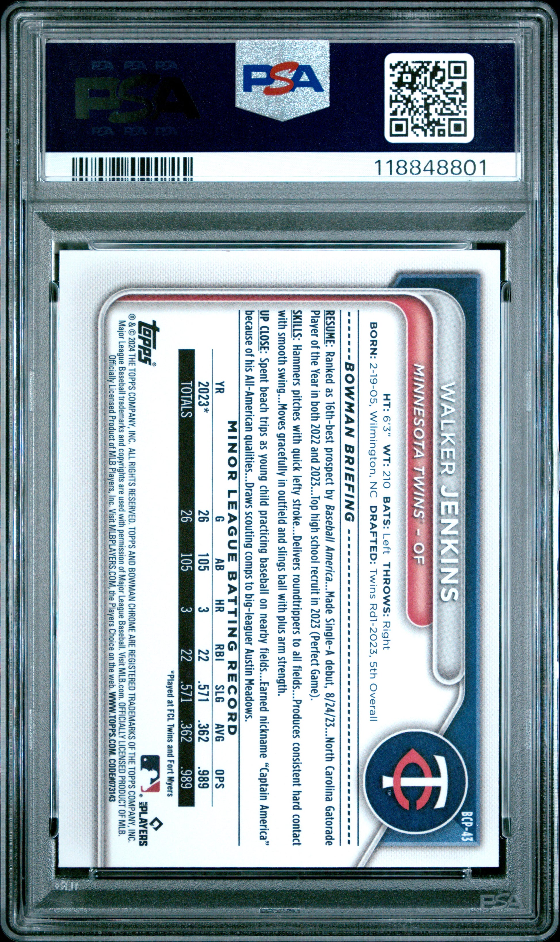 2024 Bowman Chrome Prospects Walker Jenkins #BCP43 PSA 10