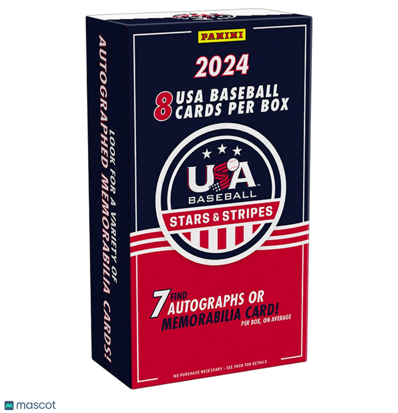 Dive into the thrilling world of baseball with the 2024 Panini Baseball USA Stars and Stripes Hobby box! This incredible set showcases the best players from the Collegiate National Team to international stars, making it perfect for collectors and fans alike. Each box includes seven autograph or memorabilia cards, along with one parallel or insert, ensuring excitement with every pack. Box Configuration: 12 packs per box, total of 60 cards Highlights – 2024 Panini Baseball USA Stars and Stripes Hobby Features iconic players from various national teams, including Japan and Chinese Taipei Incredible Super Prime materials like fielding gloves and USA flag patches Ideal for building sets year after year Includes rookie cards and is perfect for engaging with the collectible community Listed With Mascot.