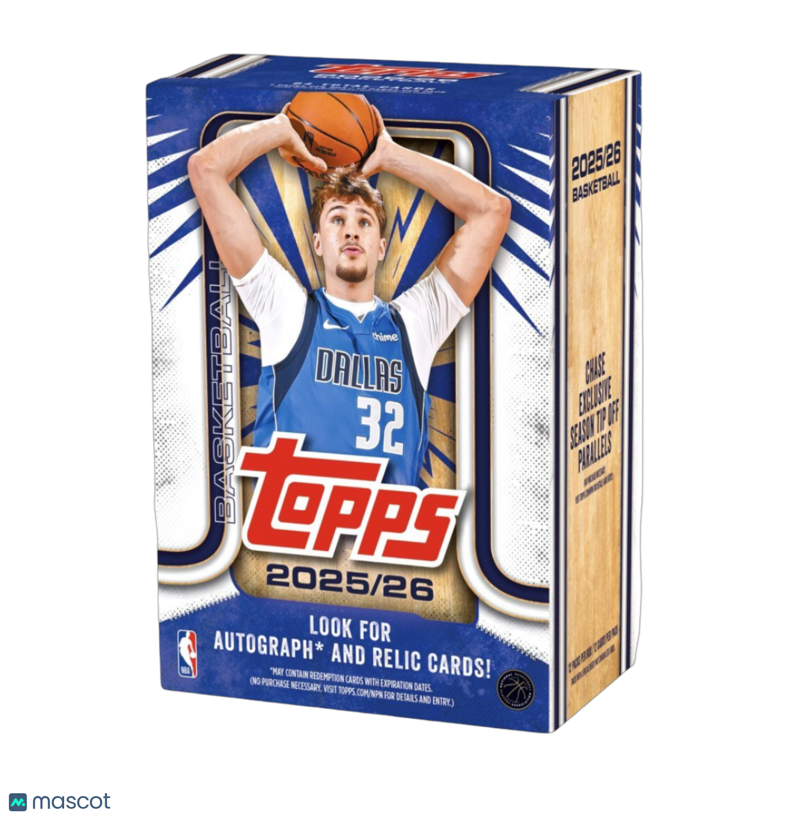 Overview - Retail release with fresh designs and exclusive parallels - Includes 7 packs of 12 cards each (84 total) Base Set - 300-card checklist: rookies, veterans, and legends - Modern design with classic Topps styling Pack Highlights - 7 packs per box, 12 cards per pack - Retail-exclusive Holo Parallels Key Features - Hot rookies and NBA icons - Variety of inserts and parallels to chase Listed With Mascot.