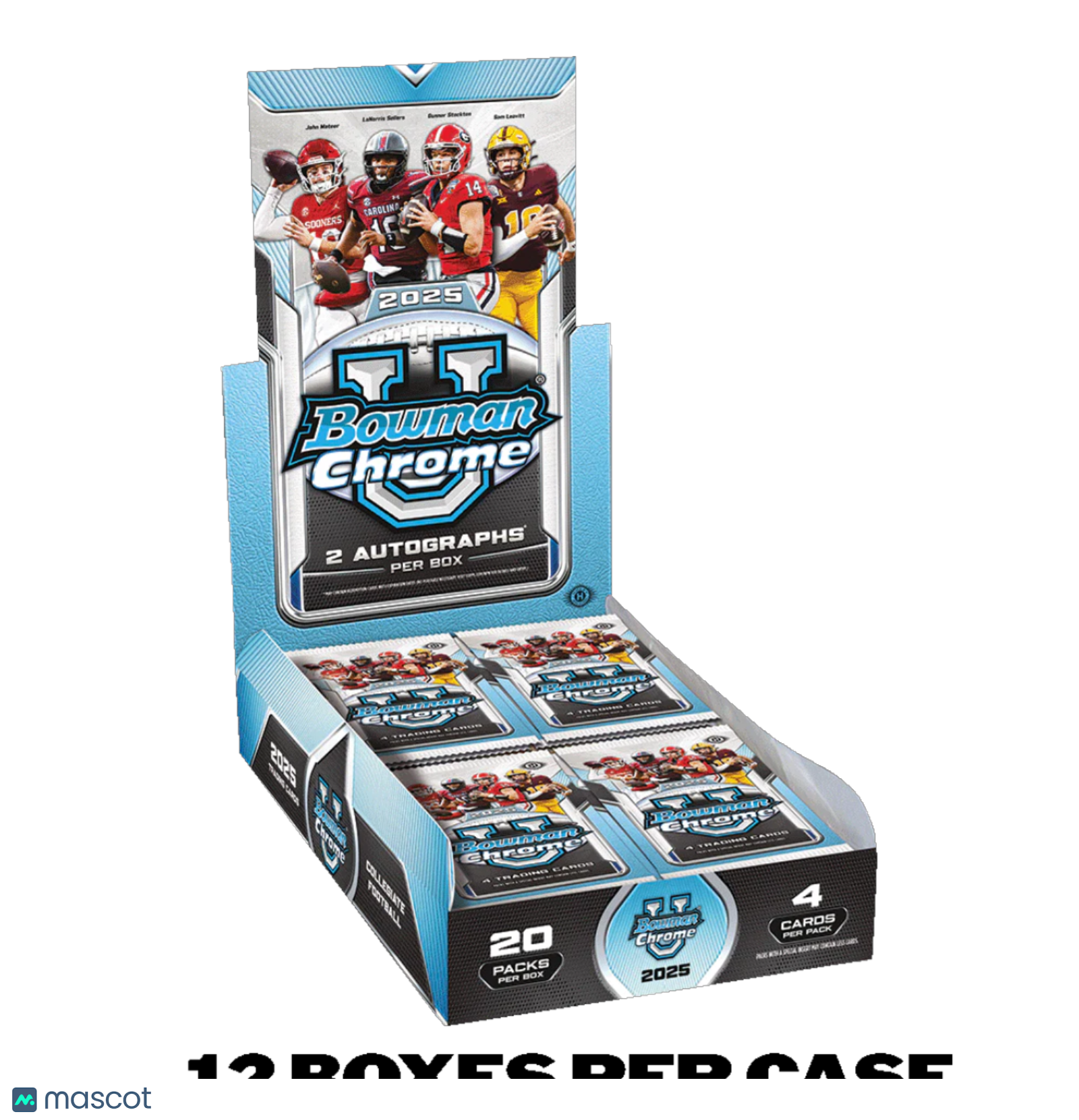 Overview - Chrome-based set releasing Oct 31, 2025, featuring top university athletes and fresh insert themes Base Set - 200-card checklist focused on college football players Pack Details - 20 packs × 4 cards = 80 total - Includes 2 autos, 2 X-Fractors, 3 numbered parallels, 1 exclusive parallel, 9 inserts Key Features - Autographs: Prospect, All-American, Campus Star, Campus Visit - Inserts: Rule Playbook, Path to Glory, Lettered Up!, Acropolis - Parallels: Includes SuperFractors (1/1) Listed With Mascot.